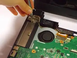 Снимите разъём красно-белого провода рядом с вентилятором.