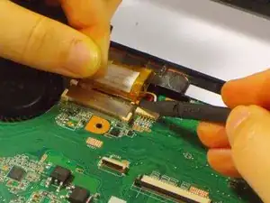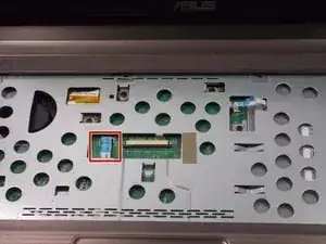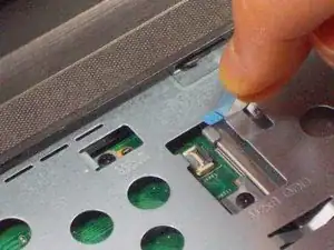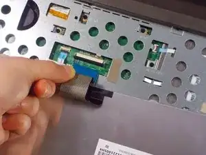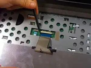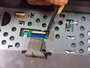 Потяните каждый конец чёрной ленточного кабеля в сторону тачпада, чтобы разблокировать разъём ленточного соединителя.