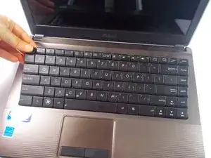 Не тяните сильно, так как к клавиатуре подключена лента к материнской плате.