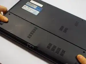 Поверните ноутбук на бок так, чтобы показанная на фотографиях красная линия была сверху.