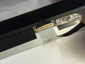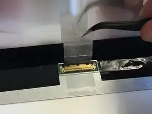 Осторожно снимите прозрачную ленту, которая удерживает разъем видео кабеля, с помощью пальцев или пинцета.