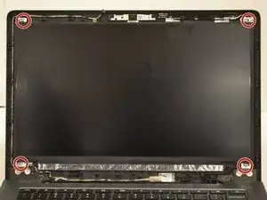 Теперь, когда крышка снята, используйте биту Philips #1, чтобы удалить четыре винта по 3 мм, расположенные в каждом углу экрана.