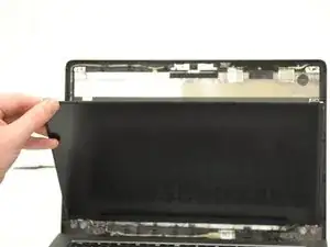 Теперь, когда винты удалены, аккуратно положите экран лицом вниз на клавиатуру. Лучше всего сначала положить ткань на клавиатуру, чтобы избежать попадания мусора внутрь.