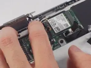 Отсоедините кабель твердотельного накопителя от зажима аккумулятора, отсоединив разъем.
