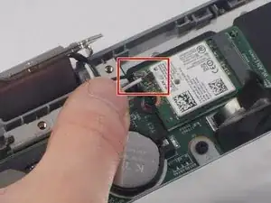 Отключите антенные кабели от беспроводного модуля, оттянув их от ноутбука.