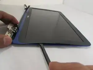 Используйте лопатку, чтобы поддеть крышку вдоль нижних краёв и отделить её от корпуса ноутбука.