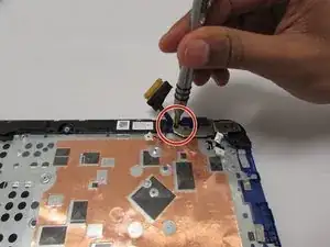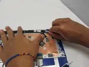 Вытяните ленточный кабель наружу, чтобы отключить заднюю крышку от материнской платы.