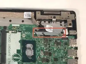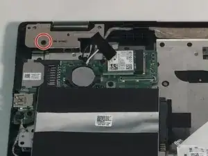 Отверните 1 винт M2.5 длиной 7 мм с помощью отвертки Phillips #1 на левом шарнире экрана.
