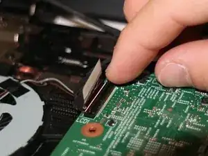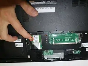 Снимите винт Phillips 3 мм #0, удерживающий плату беспроводной связи на месте.