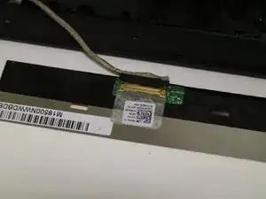Отсоедините кабель дисплея от материнской платы, отведя в сторону ленту и подняв фиксатор разъёма.