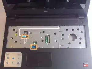 Если ваша версия этого ноутбука имеет подсветку клавиатуры, будет два разъема; оранжевый помеченный также нужно будет снять.