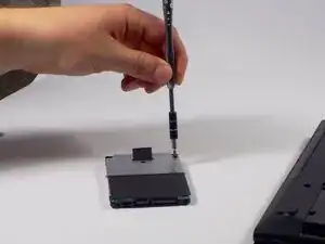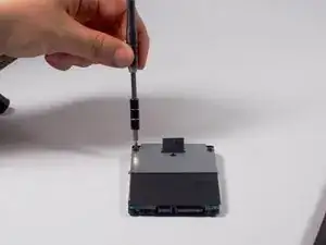 Удалите 1 винт длиной 4 мм слева, который удерживает жесткий диск, используя отвертку PH0.