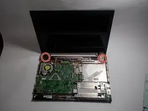Удалите четыре винта PH0, длиной 5 мм, которые крепят петли дисплея к корпусу.