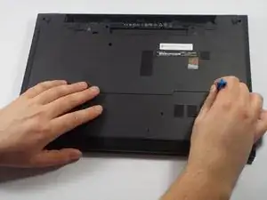 Сдвиньте нижнюю крышку к себе и снимите ее с основания ноутбука. Уберите крышку в сторону.
