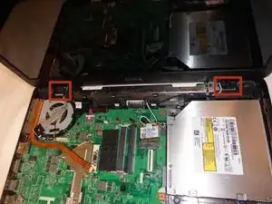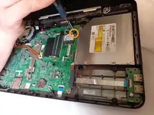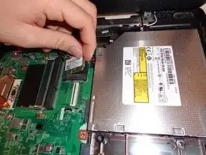 Сразу за оптическим приводом найдите крепёжный винт 4 мм Phillips #00 для небольшой платки и удалите его.