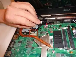 Осторожно вытащите кабель, расположенный рядом с вентилятором, из его разъёма.