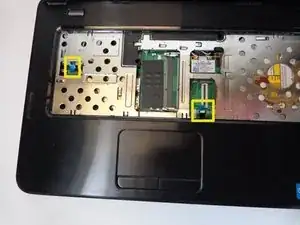 Найдите и удалите два винта Phillips #00 длиной 5 мм, расположенные под клавиатурой.