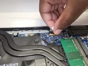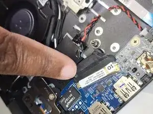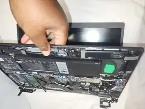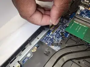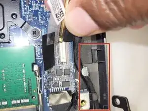 Снимите клейкую ленту, которая фиксирует кабель дисплея на месте.