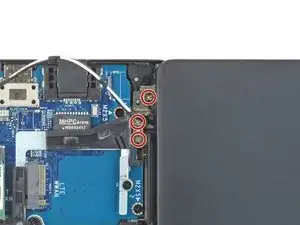 Используйте отвертку с крестообразным шлицем, чтобы снять винт длиной 3,5 мм, удерживающий карту WLAN и её кронштейн.