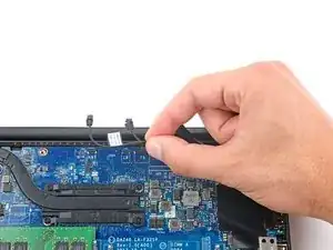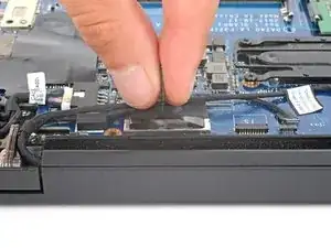 Вытяните кабели WLAN из их резинок и переместите их в сторону, над левой стороной ноутбука.