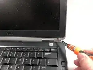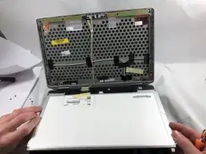 Откройте ноутбук и открутите винт 2.5 X 3 мм в нижнем центре экрана