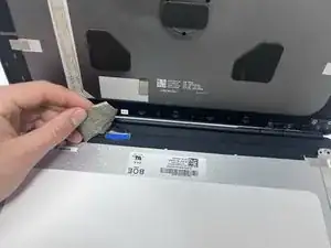 Удалите синюю ленту, расположенную между белой лентой и видеоконнектором.