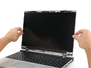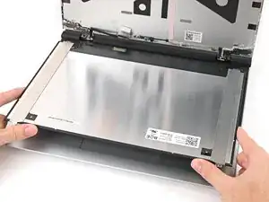 Не тяните дисплей слишком далеко от верхней крышки — он всё ещё подключён кабелем.
