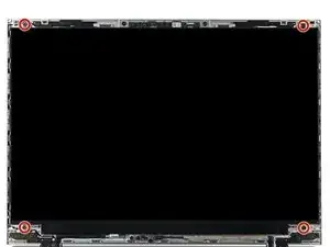 Поддерживая дисплей одной рукой, используйте отвертку Framework, чтобы выкрутить четыре винта T5 Torx длиной 2.4 мм, закрепляющих дисплей.