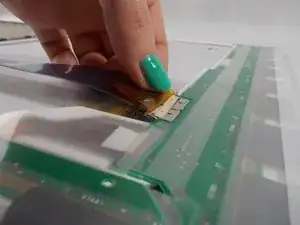 Используйте пинцет, чтобы отключить ленточный кабель от материнской платы.