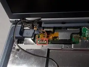 С помощью пинцета отсоедините кабели крышки петли от материнской платы.