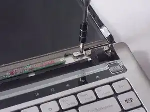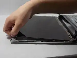 После извлечения винтов аккуратно переверните экран на клавиатуру.