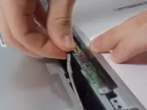 Используйте пинцет, чтобы отогнуть ленту, скрывающую разъём кабеля в нижней части экрана.