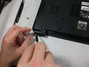 Вытяните батарею из ноутбука, чтобы удалить её.