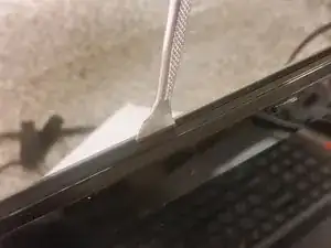 С обеих сторон нижней части экрана находятся крышки винтов. Используйте плоскую отвертку, чтобы их снять.