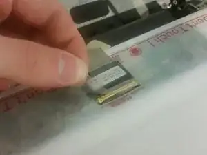 Отделите все ленты от задней части ЖК-экрана, затем потяните кабель прямо назад, чтобы удалить его из ЖК-дисплея.