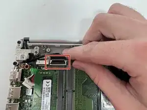 Отсоедините экран от материнской платы, подняв крышку провода и сняв шнур экрана.
