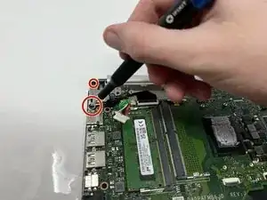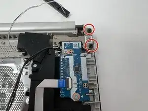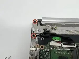 Удалите четыре черных винта длиной 5 мм, крепящих два серебряных шарнира экрана, с помощью отвертки Phillips #00.