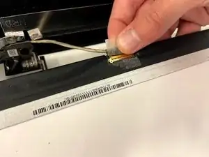 Используйте большой и указательный пальцы, чтобы осторожно извлечь соединитель дисплея из металлической рамки.