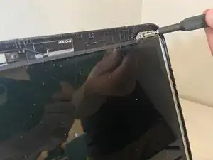 Используйте пластиковый инструмент для аккуратного поддевания пластикового корпуса от экрана, начиная с середины и двигаясь к углам.