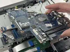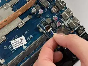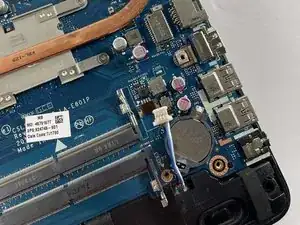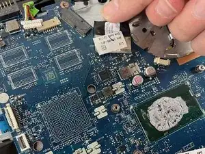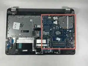 Примечание: В нашей модели отсутствует аккумулятор. Перед выполнением любых ремонтных работ убедитесь, что аккумулятор снят и компьютер не подключён к источнику питания. Также важно заземлить себя, прикоснувшись к металлу, чтобы разрядить избыточное электричество перед началом ремонта.
