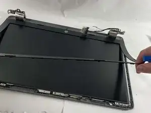 Используйте инструмент для открытия, чтобы аккуратно удалить клеевой ободок рамки вокруг экрана.
