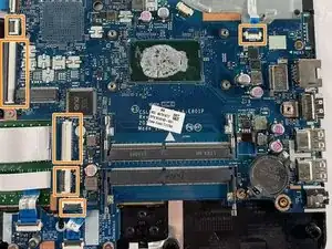 Поднимите фиксирующие планки ZIF, удерживающие шесть ленточных кабелей на месте.