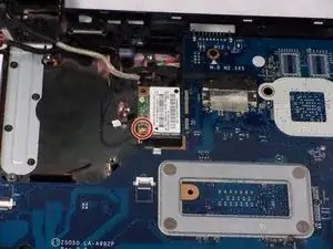 Отсоедините маленький провод, выступающий из материнской платы под металлической пластиной.