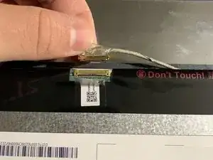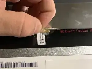 Отклейте наклейку, фиксирующую разъём экрана.