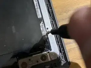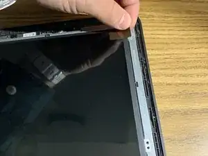 Если ЖК-дисплей уже повреждён и вы собираетесь его заменить, можно использовать медиатор, чтобы разорвать клей вдоль внутреннего края рамки. Если вы хотите сохранить ЖК-дисплей, примените тепловую пушку, чтобы размягчить клей перед снятием рамки.
