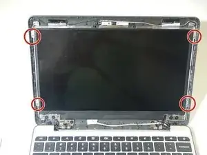 Используя отвертку Phillips #0, удалите четыре винта длиной 2.5 мм, удерживающие экран на месте.
