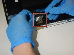 Удалите ленту, накрывающую проводку, и отсоедините шлейф, который закрепляет экран к материнской плате.