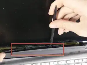 Аккуратно подденьте по краям дисплея лопаткой, чтобы снять рамку, окружающую экран.
