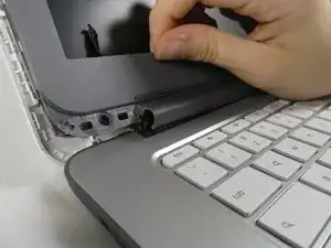 Выкрутите два винта 2 мм, фиксирующие рамку к корпусу ноутбука.