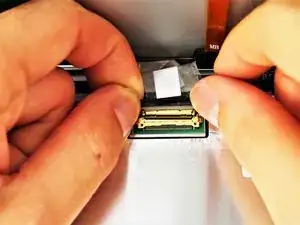 Отклейте ленту от золотого разъёма провода слева.